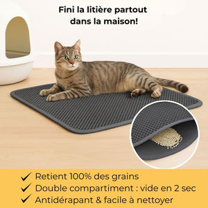Tapis de litière pour chat, retient les grains, design élégant et nettoyage facile.